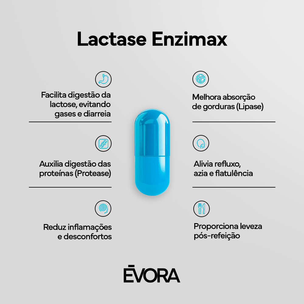 Sua fórmula reúne três enzimas digestivas essenciais — Lactase, Lipase e Protease — para facilitar a digestão, melhorar a absorção de nutrientes e trazer mais bem-estar no dia a dia.